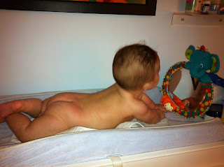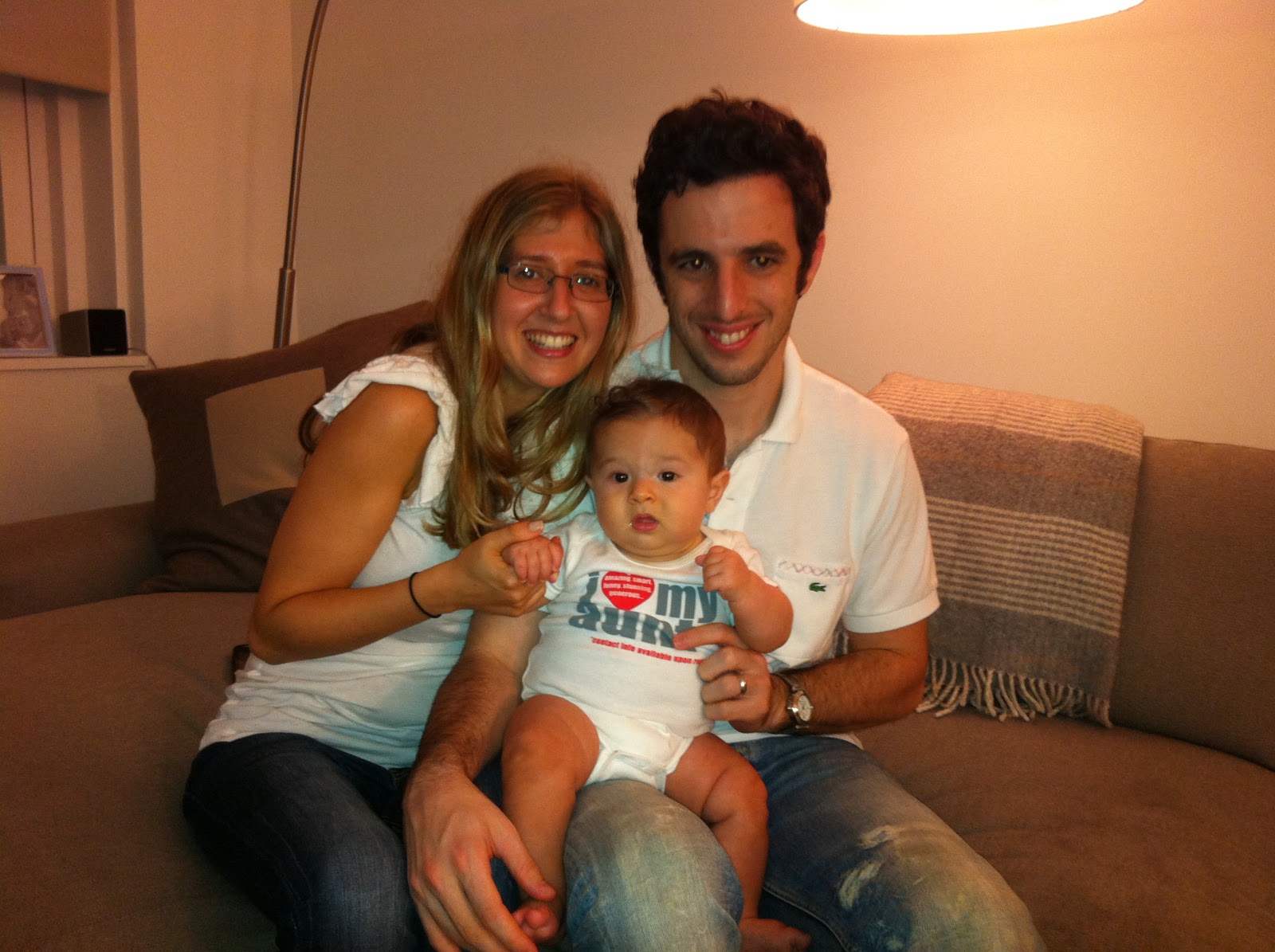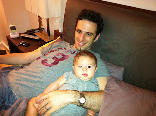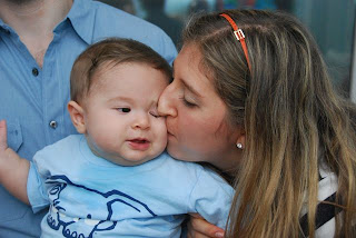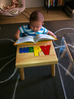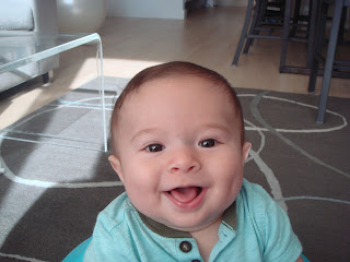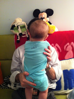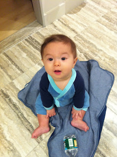 Wow - I've hit half of a whole year. Time really flies! I rounded out the summer by attending a few weddings with my parents. They also insisted on putting me in a bathing suit on numerous occasions. Luckily I enjoyed my pool experiences... most of the time. Mommy and Daddy even enrolled me in a baby swim class at the YMCA. My favorite thing to do there is chew on the rubber duckies they throw in there to distract us. In the past couple of months, I've also gone up a couple of sizes. Most of the comments I'm getting now are "wow! he's so big!" I try to take this as a compliment. Obviously people are referring to the fabulous muscles I use to throw things to the floor from my high chair. Oh yes - I'm eating solids now - yum! I am also now sitting up on my own without toppling over! I had to get some new clothes because of this growing older thing. Check them out! I rang in the new year with a nifty new shirt and shoes from Uncle Kenny and Aunt Nina. They recently left the country for many travels and adventures... but promised to bring me back a kimono and hopefully some toys. We took some photos during their last week here using Uncle Kenny's real camera. Mommy was relieved because her iPhone has been in overdrive... I am just THAT photogenic!