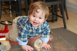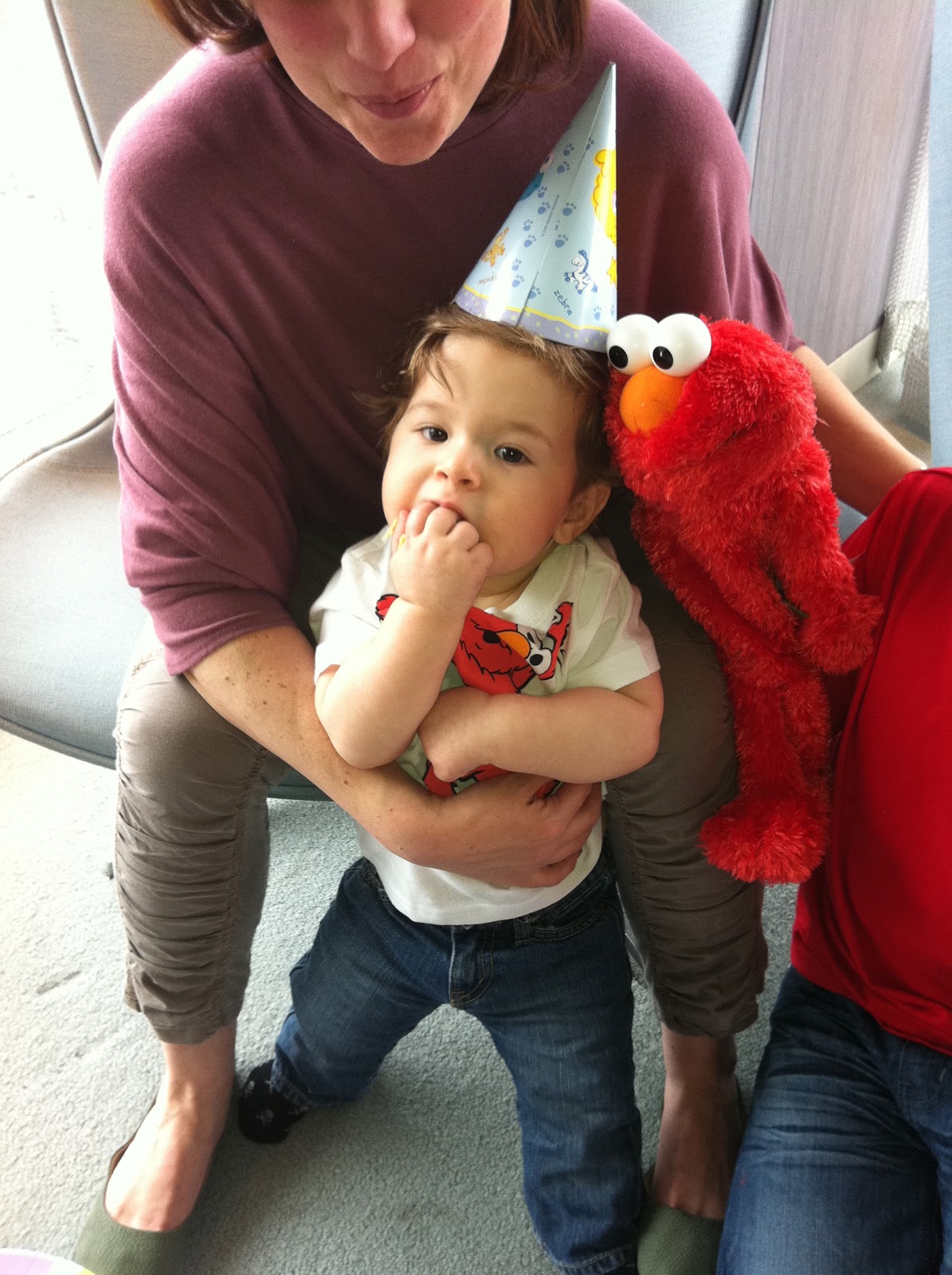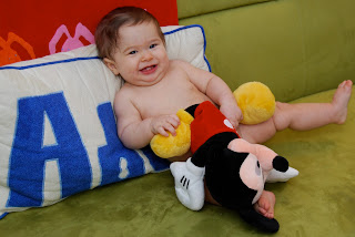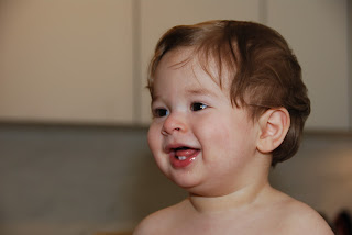 Awww... labor day is here already... where did the summer go? The rest of the summer was fairly eventful, with a couple of trips and mini adventures. I also started saying a bunch of words and one full sentence ("don't know!" when asked where someone or something is). Other words include: apple, cat, shoes, more, hat, dog, NO (this is a big one), yes, okay, blankie, elmo, and chair. Very exciting!